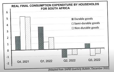 The graph does show that durable goods were the highest expenditure category throughout the whole period depicted (Q4 2021 to Q3 2022)